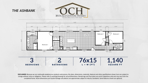 ZoomDetails The AshbankWinston HomebuildersBy Ocala Custom HomesJuly 20, 20201140 Sq. Ft. | 3 Bedrooms | 2 Baths