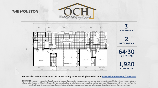 ZoomDetails The HoustonWinston HomebuildersBy Ocala Custom HomesJuly 20, 20201920 Sq. Ft. | 3 Bedrooms | 2 Baths