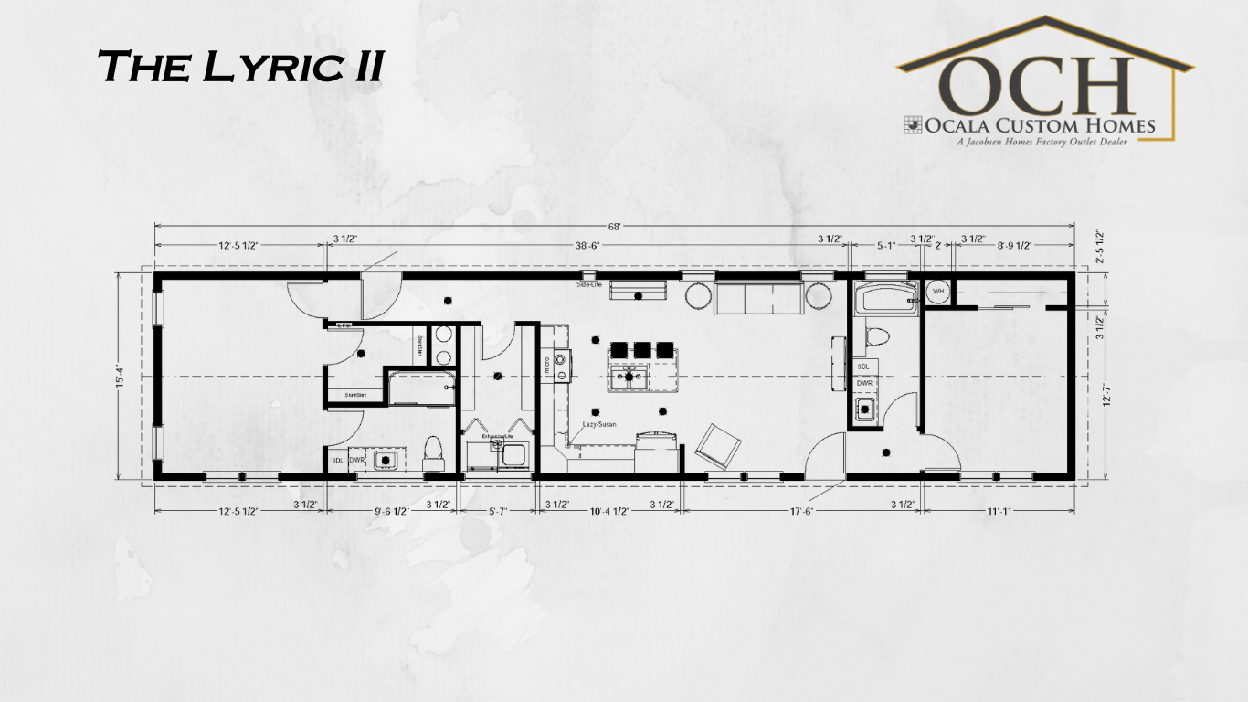 Perfectly suited for smaller lots or park communities, The Lyric II features an elegant double-door entry ideal for carport installations. For those with more space to build, the flexible design allows the kitchen, pantry, laundry area, and master bath to be flipped—creating a rear door and hallway layout to suit larger lots.